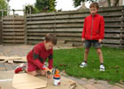 Alle koekebakkers hebben schilden gemaakt. Eerst gezaagd samen met papa, en daarna geschilderd met echte verf. Ze zijn heel mooi geworden.